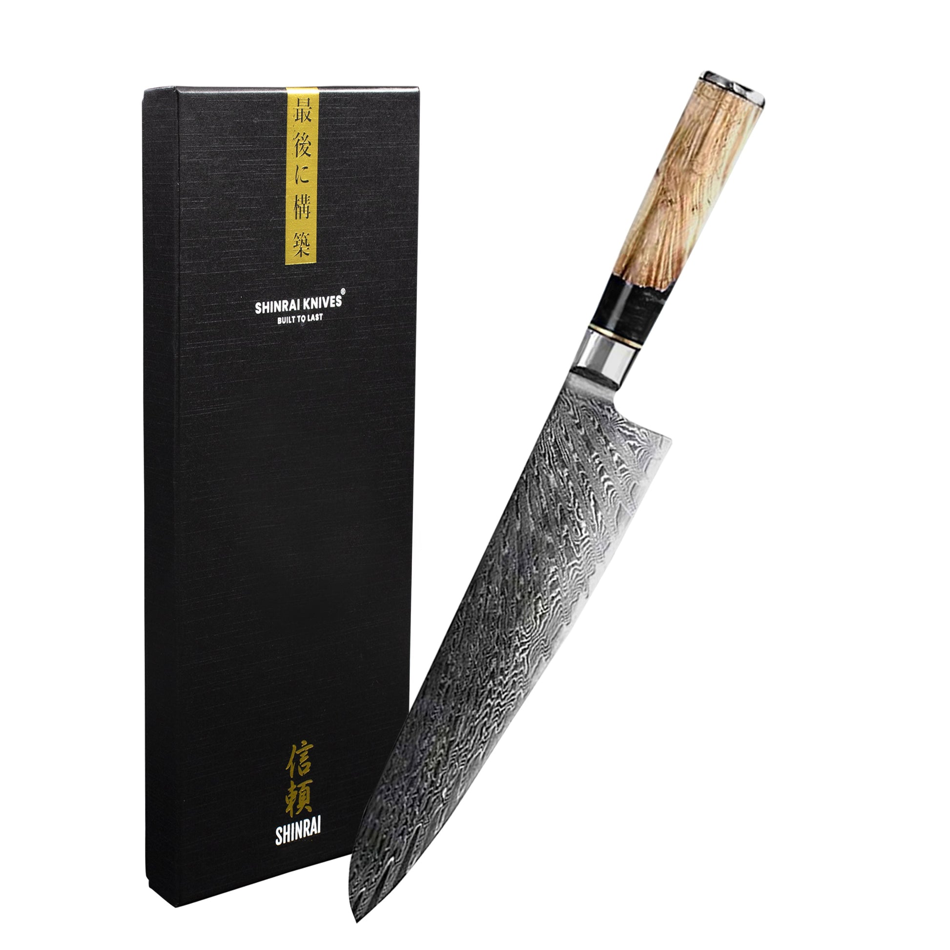 Le couteau de chef de la série Epoxy Onyx de Shinrai Knives est un bel accroche-regard pour votre bloc à couteaux. Ce couteau populaire est non seulement beau à regarder, mais peut également être utilisé pour toutes les tâches de coupe. Aucune tâche de découpe n'est impossible avec ce magnifique couteau de chef japonais. Cet appareil polyvalent convient pour couper de la viande, du poisson, des légumes, des fruits et des herbes.