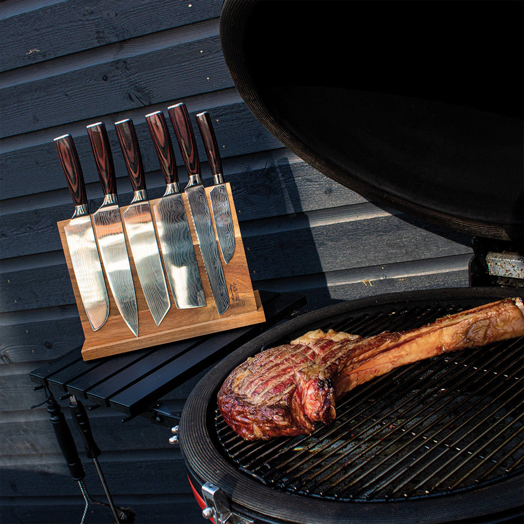 Bewaar de messen in een messenblok of aan een magneetstrip om de snede te beschermen en de set netjes te presenteren.